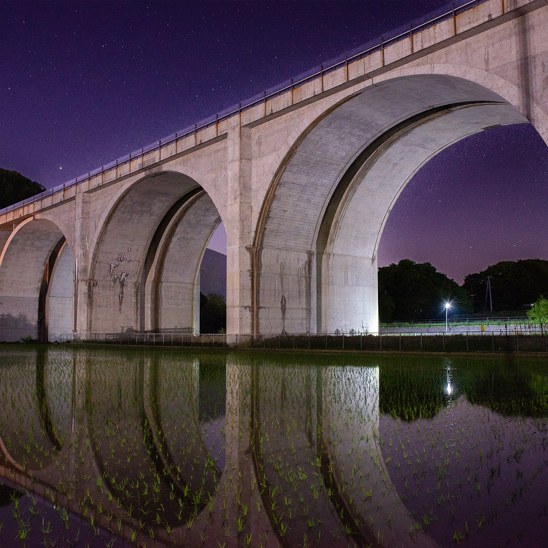古代ローマの水道橋を思わせる美しいアーチが連なる、上田市の名所。橋の高さが整った構造美も魅力です。(東信第二グループ)