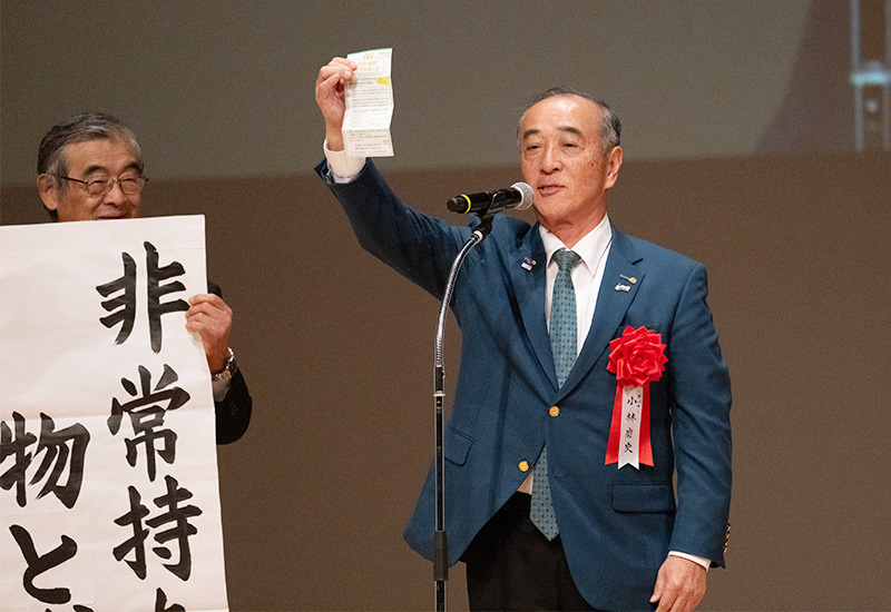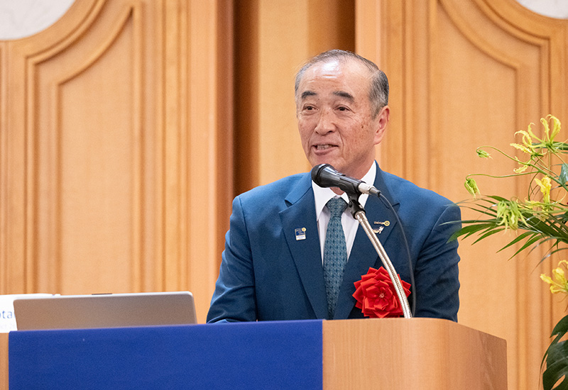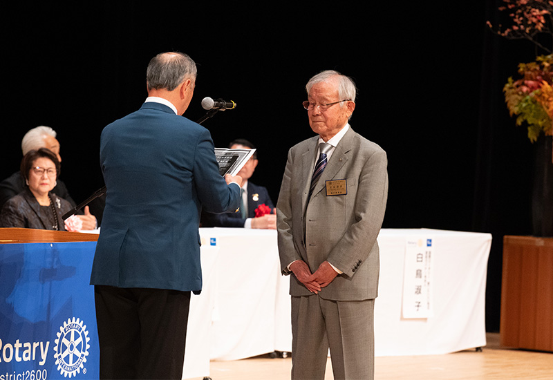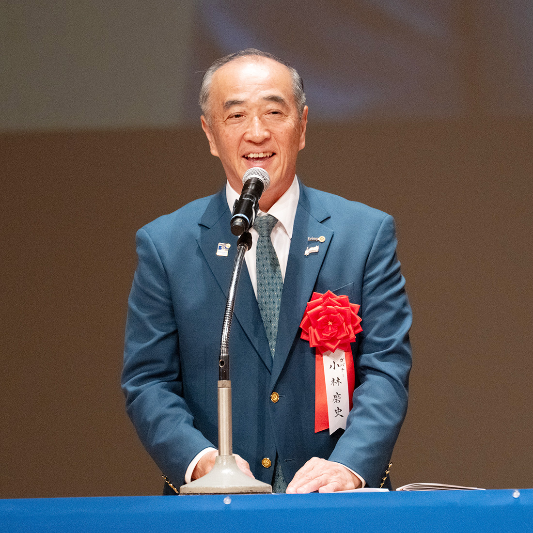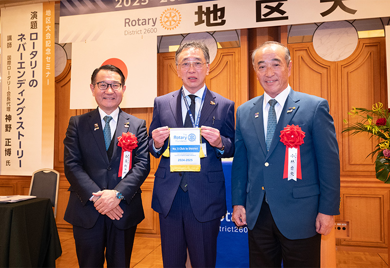 フランチェスコ・アレッツォ国際ロータリー会長の命を受け、第2610地区パストガバナーの神野正博様がRI会長代理としてお越しくださいました。神野様は石川県七尾市にて恵寿総合病院を運営され、一昨年の能登半島地震では「24時間医療を止めない」と自ら先頭に立ち、災害へ立ち向かったご本人でもあります。