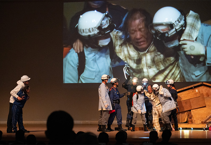 「地区大会で防災に関する演劇をしたい」との依頼を小林ガバナーから昨年末に受けた。小林Gと私は松本JC時代からの旧知であり、小林GがJC理事長の時、松本城築城400年祭(1993年)にJCが主催する市民野外劇「愛と夢まつもと」の歴史編のシナリオと演出を私が担当したという由縁がある。