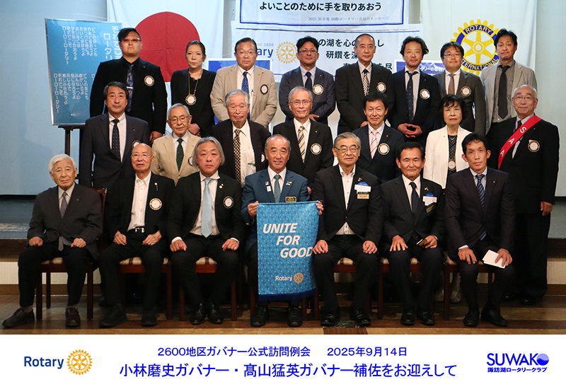 今後も2600地区会員の皆様からのお支えをいただき、これまでのご縁、そして新たなご縁を大切にしながら、「超我の奉仕」と友情を重んじて尽力してまいります。どうぞご指導ご協力のほど、よろしくお願いいたします。